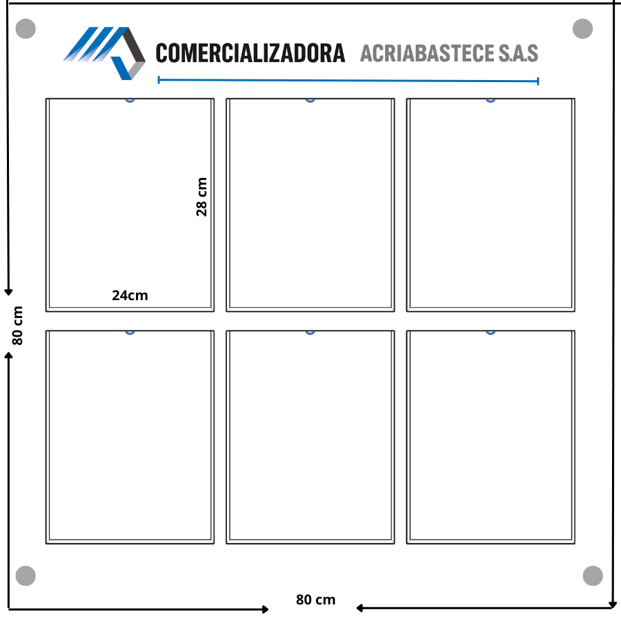 - Cartelera acrílica de 6 bolsillos – 80×78 cm (ver producto)